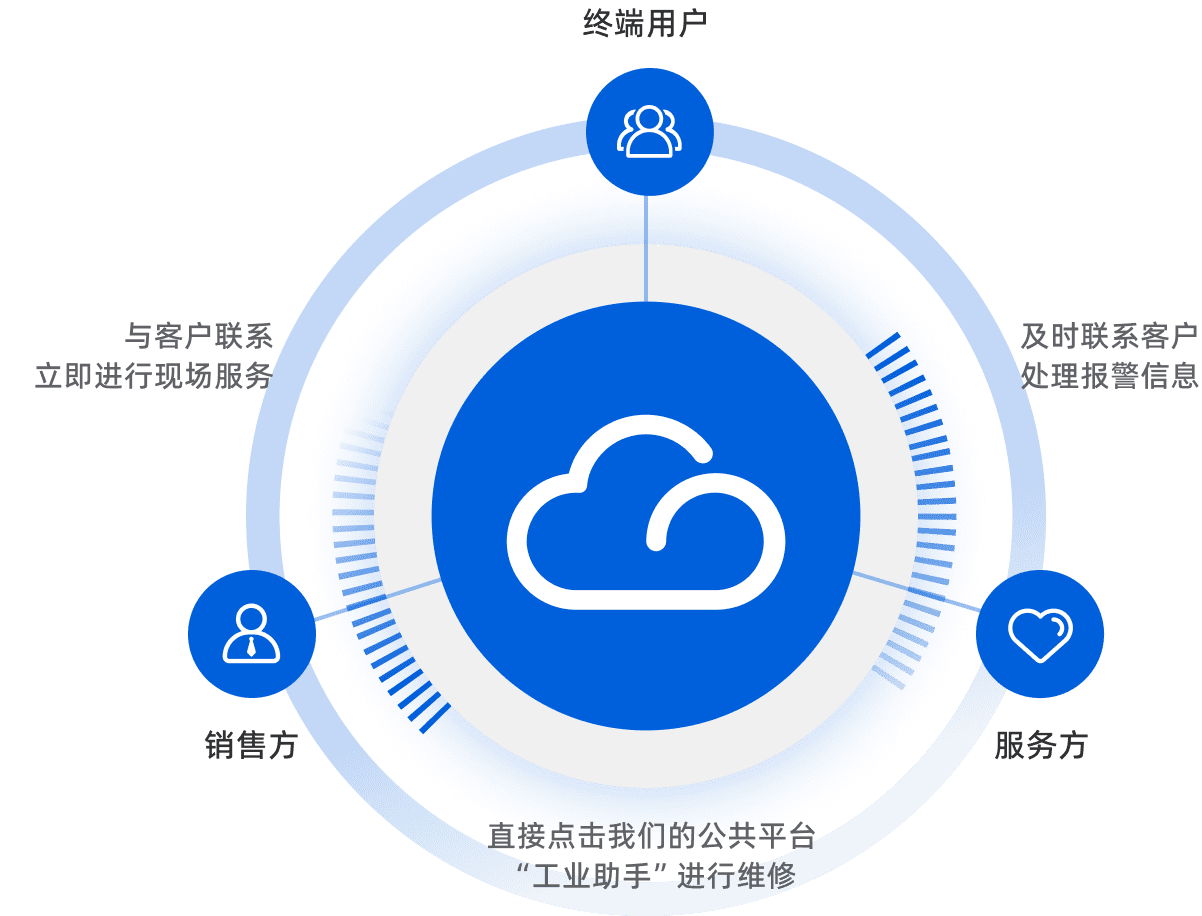 实时采集空压机的现场运行数据,并把数据传输到云服务器上,为用户提供各种云上数据服务